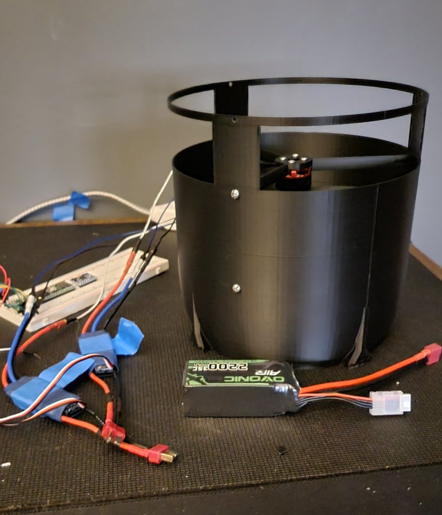 How: The system uses two contra rotating propellers to counteract the torque affect the system would have on a functional vehicle. The two propellers were powered by two separate motors with dedicated batteries.